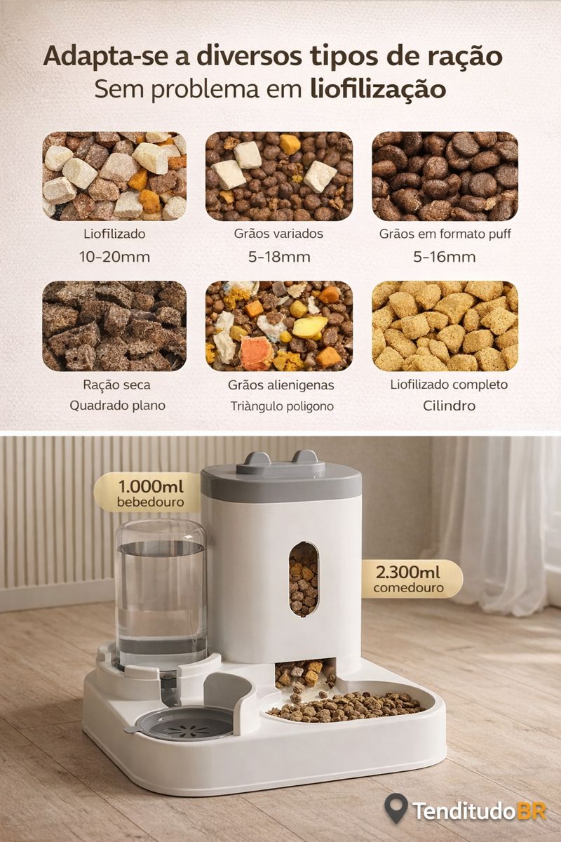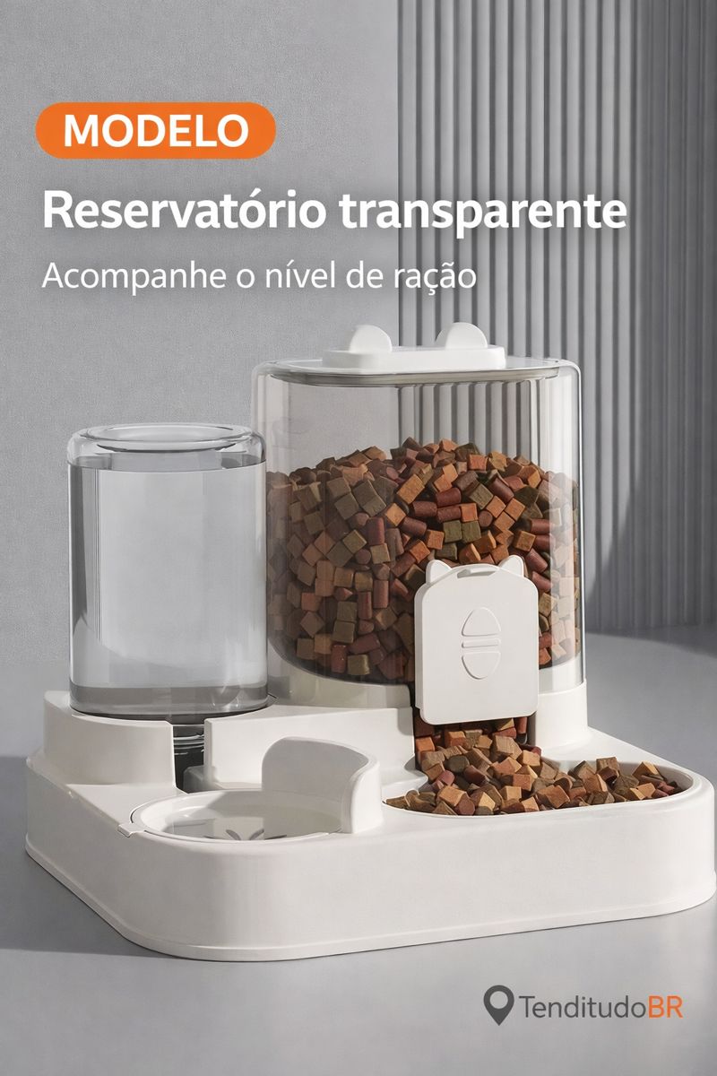 Aproveite agora: FRETE GRÁTIS + DESCONTO — garanta o seu Alimentador Automático 2 em 1 e dê mais conforto para o seu pet hoje mesmo.