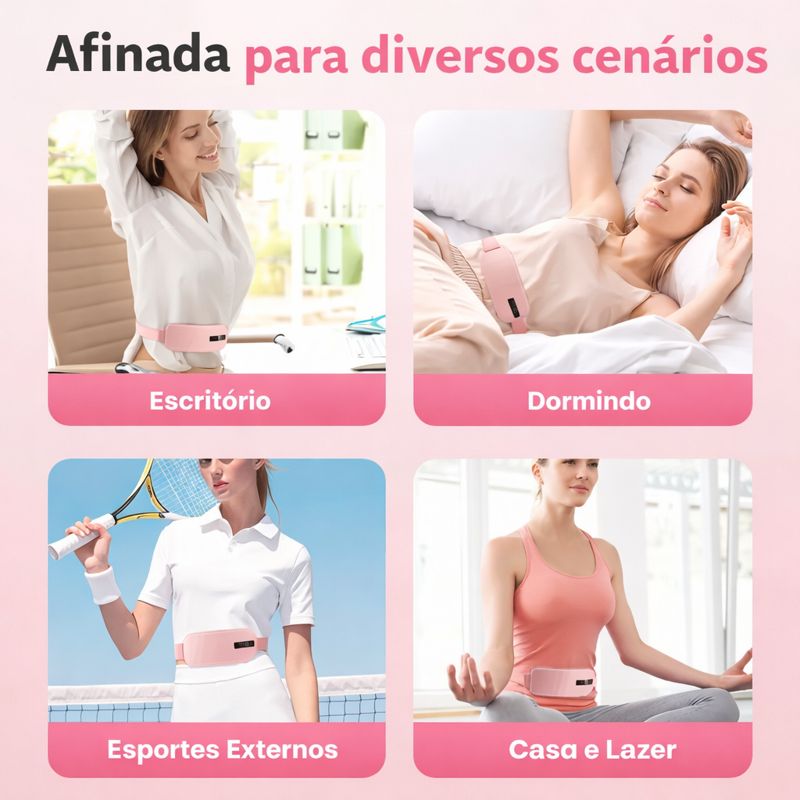 Aquece áreas-chave: barriga/estômago/cintura — uso super prático