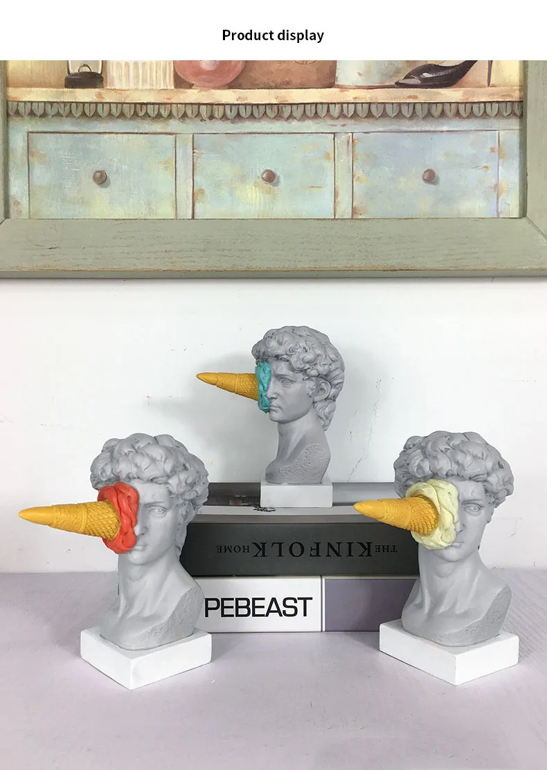 A Escultura Moderna “Davi com Sorvete” é aquele detalhe irreverente e sofisticado ao mesmo tempo: um clássico repaginado com um toque pop que transforma o ambiente na hora — sem reforma, sem esforço.
