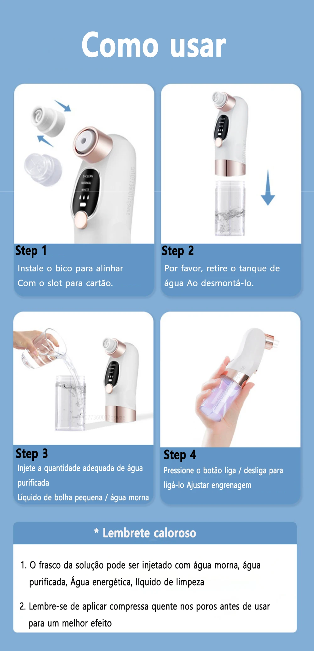Pele limpa e livre de cravos em poucos minutos, sem agredir o rosto O segredo das clínicas de estética agora na palma da sua mão.